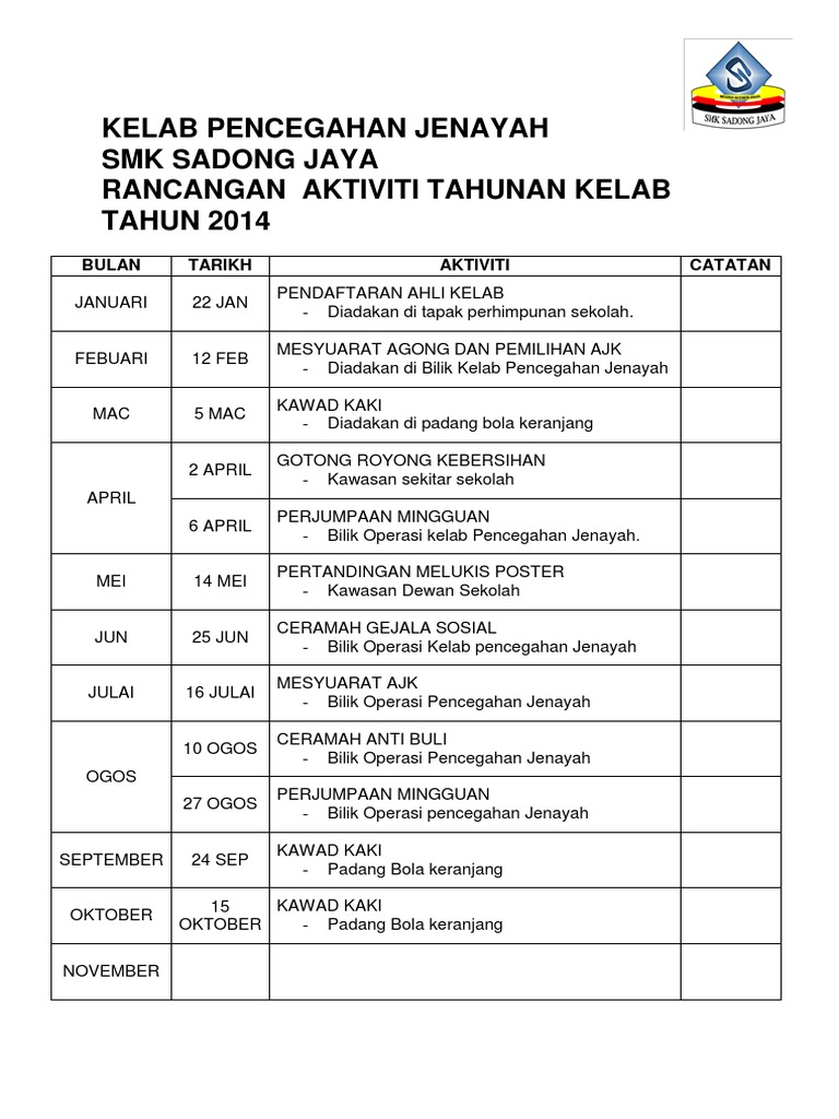 Disini saya sertakan perlembagaan kelab pencegahan jenayah yang telah saya ubah suai mengikut kesesuaian sekolah saya. Or create a free account to download. Aktiviti kelab pencegahan jenayah sk pengkalan rinting bulan aktiviti objektif januari mesyuarat ko kurikulum mesyuarat induk/guru penasihat mesyuarat agung kelab pencegahan jenayah • memberi pendedahan kepada para ahli tentang prosedur dan tatacara bermesyuarat. Kelab pencegahan jenayah beri pendidikan untuk murid. Semua ahli kelab pencegah jenayah melibatkan diri dalam pertandingan mewarna gambar anti ragut.