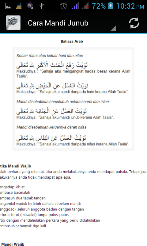 Related : Niat Mandi Wajib Rumi : Mandi wajib (mandi besar) adalah meratakan air ke seluruh tubuh dengan niat dan cara tertentu..