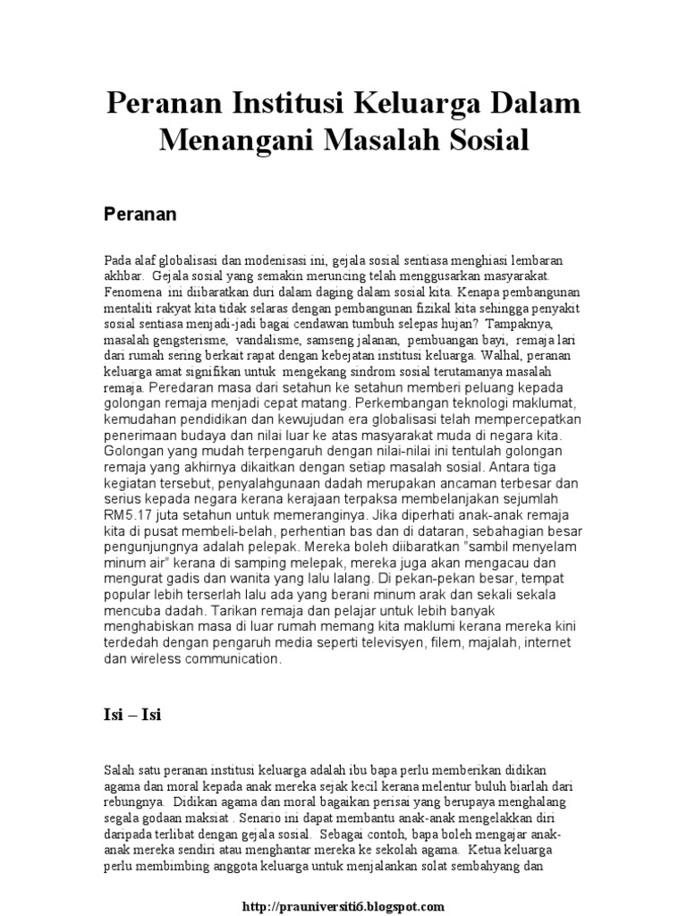 Peranan Ibu Bapa Dalam Menangani Masalah Sosial Remaja from imgv2-1-f.scribdassets.com Masalah sosial yang terjadi dalam hal kesehatan dipengaruhi oleh faktor kemiskinan dan juga biaya yang mahal. Edi suharto, phd abstract this paper aims to identify roles of social workers in the alleviation of global social problems. Sebuah keluarga memegang peranan penting dalam kehidupan karena setiap manusia atau muslim tentunya berangkat dari sebuah keluarga. Cabaran dalam menangani masalah pergaulan bebas di kalangan remaja sekolah. Peran pekerja sosial dalam penanganan masalah sosial global oleh: Universitas pendidikan ganesha 8 months ago. Peranan keluarga dalam menangani masalah ini juga ialah dari aspek penyediaan persekitaran yang harmonis. Salah satu peranan institusi keluarga adalah ibu bapa perlu memberikan didikan agama dan moral kepada anak mereka sejak kecil kerana melentur buluh biarlah dari rebungnya.