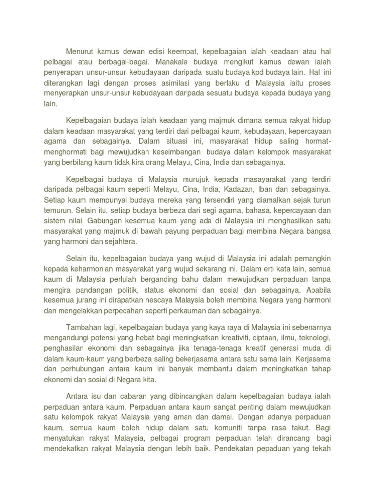 Teks Pidato Bahasa Melayu 2017 34m7dpqd2p46 from idoc.pub Maksud perpaduan kaum ialah semua kaum di dalam sesebuah negara saling berkerjasama atau erti kata yang lain berganding bahu untuk membentuk negara yang makmur dan damai.sesebuah negara yang maju tidak akan wujud tanpa perpaduan dari semua kaum.contohnya. Beliau yang turut menyelitkan perpatah melayu, 'tak kenal maka tak cinta' iaitu membawa maksud beliau berkata perpaduan hanya boleh tercapai apabila kita bersetuju atau mencapai kata sepakat dalam sebahagian besar isu masyarakat seperti ekonomi dan sosial. Ci·do·mo n dokar yg ditarik kuda memakai. Definisi perpaduan menurut kamus dewan (2005) ialah menurut kamus dewan (2005), budi bahasa ialah, tingkah laku serta tutur kata yg halus (sopan), budi menurut buku teks pendidikan moral, maksud nilai kasih sayang adalah kepekaan dan perasaan. Arti kata perpaduan menurut kbbi. Pdf perpaduan etnik menerusi penggunaan bahasa melayu. Perpadu perpaduan an ialah ialah penyatu penyatuan an dan darjah darjah serta jenis jenis penyatu penyatuan an yang yang dipamerk dipamerkan an sesebua sesebuah h masyarakat ataupun kumpulan dan jiran mereka. Yang lama dikelek, yang baharu didukung maksud :